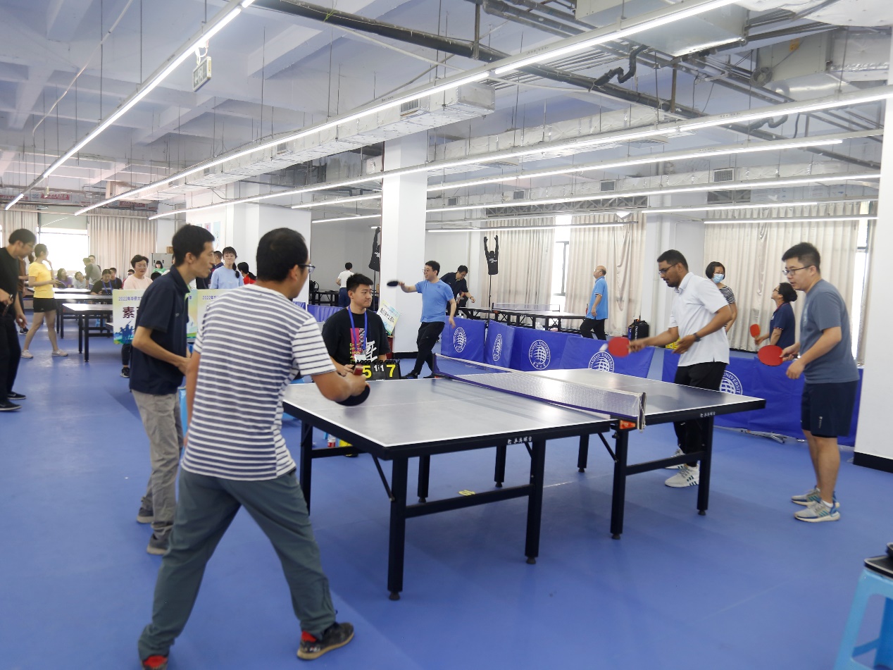 5月7日上午,2022年yl23411永利集团教职工乒乓球团体赛在厦门校区乒乓球馆举行,共有65名教职工组成11个代表队比赛。比赛采取男女混合赛制,设置女单、男双、混双和男单等项目,采用单循环、三局二胜,每局11球的赛制。