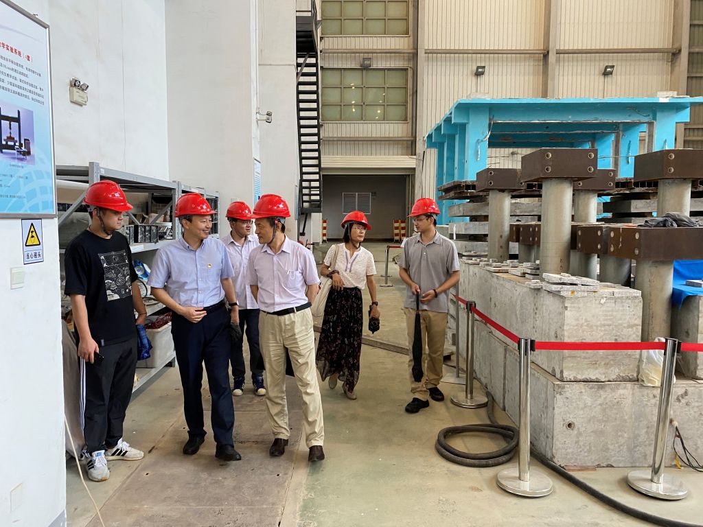 座谈会后,戚承志一行还实地走访了土木工程学科实验大楼,调研福建省结构工程与防灾重点实验室、福建省智慧基础设施与监测重点实验室、福建省结构体系创新与智慧建造2011协同创新中心、福建省隧道与地下空间工程技术研究中心和建筑工程智能建造与自动化福建省高校工程研究中心等省市级平台建设情况,并就实验中心大型地震模拟振动台等大型设备性能特点、配置优势、技术研发及设备运营实效等方面进行了坦诚而深入的交流。