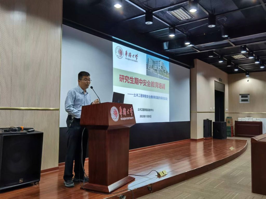 11月8日下午,yl23411永利集团研究生期中安全教育培训在学科实验楼510报告厅举行,副院长刘阳出席并致辞,部分教师代表、实验中心全体工作人员和全院研究生参加培训。实验中心主任柴振岭主持培训。