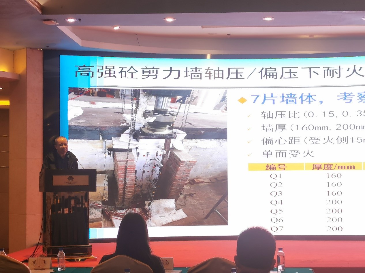 本次会议会期3天,来自国家消防救援局、福建省消防救援总队专家代表,应急管理部直属消防研究所、消防产品合格评定中心有关负责人,全国相关科研机构、高等院校专家学者,省级消防协会及相关领域协会负责人,各地消防企业负责人等代表近400人参加会议。我院徐玉野教授应邀作《强混凝土剪力墙和圆孔梁耐火性能试验研究》的专题报告。