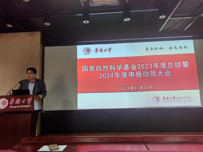 刘阳通报了学院2023年度国家自然科学基金项目申报和获批情况,并对2024年度国家自然科学基金申报工作进行了部署。他强调,全院教师要重视高水平研究成果的积累和与国内外同行的学术交流,争取在基金申报立项上取得高质量发展。