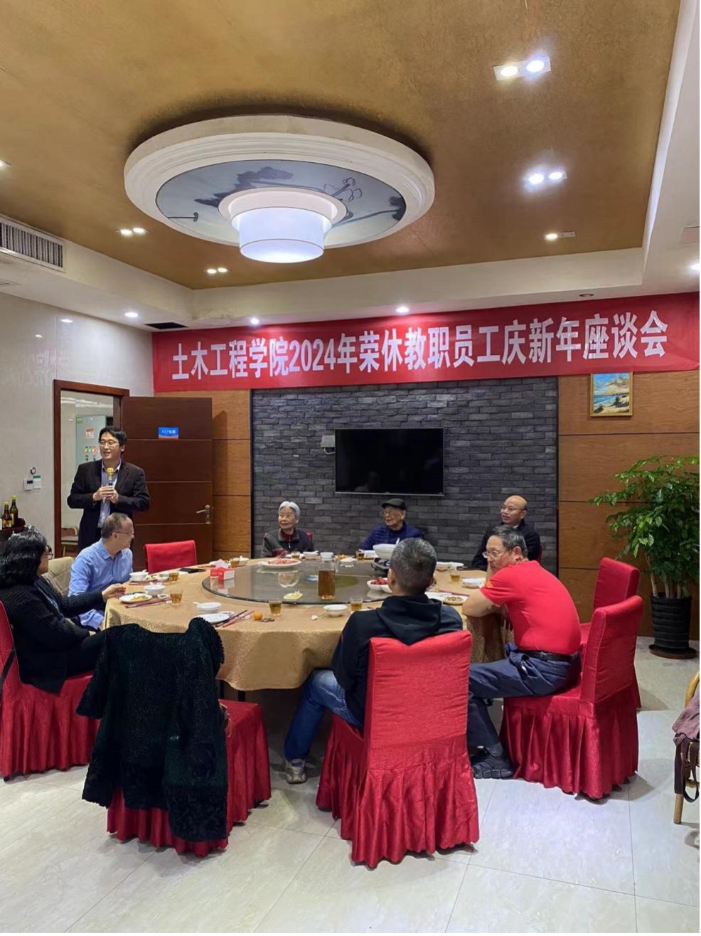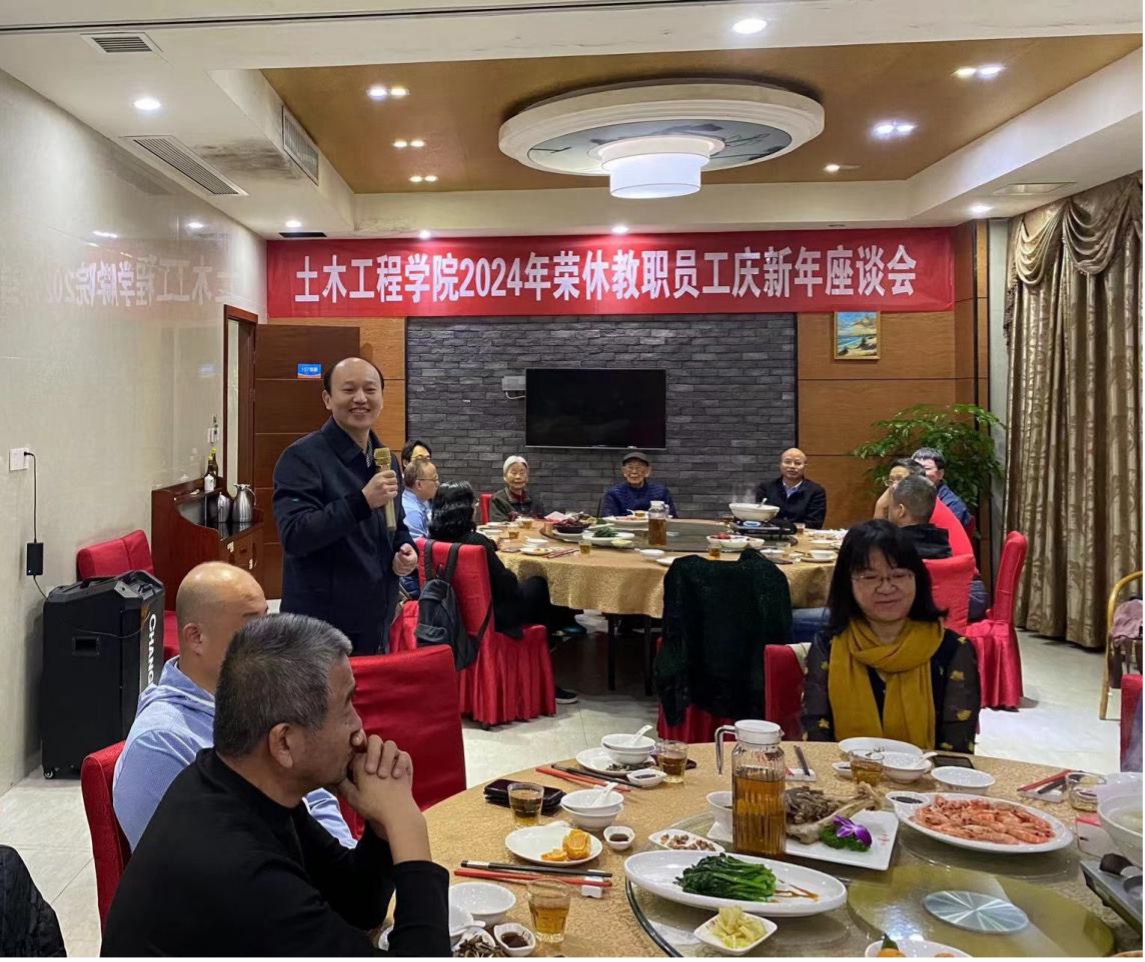 刘阳院长从一流专业建设、专业认证、科研服务和实验室建设等方面介绍了学院2023年各项工作中取得的成果。他表示,学院的发展离不开各位荣休教职员工一直以来的支持和奉献,学院获得的各项成果凝聚着全体土木人的开拓、创新。2024年,学院将继续努力推进学科建设、人才培养等工作高质量发展。