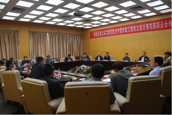 座谈会上,郭子雄首先对中国市政工程西北设计研究院各位工程师的到来表示热烈欢迎,并表示校企合作应立足双方的实质需求,坚持优势互补,实现互利共赢。