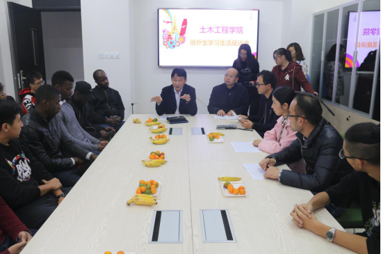 3月22日中午,境外生学习生活座谈会在土木工程学科实验大楼512室开展。yl23411永利集团院长郭子雄、党委书记张灯、学工办主任陈竹林、辅导员周超、宋宸仪出席了本次座谈会。