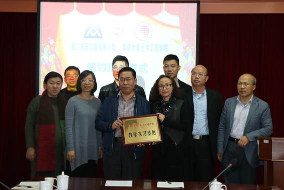 3月24日上午,yl23411永利集团与厦门市市政工程有限公司共建教学实习实践基地签约授牌仪式和交流会在厦门市市政工程有限公司举行,yl23411永利集团副院长秦旋教授与厦门市市政工程有限公司陈有雄总经理分别在共建协议书上签字,并交授“yl23411永利集团教学实习实践基地”牌匾。厦门市市政工程有限公司党群人力部经理张帆、劳务公司负责人梁志达、市政工程研究所副所长黄明东,以及yl23411永利集团党委书记张灯、特聘教授土木工程系系主任霍静思、桥梁方向教师刘振宇博士等出席,厦门市市政工程有限公司总工程师李美凤主持签约授牌仪式和交流会。