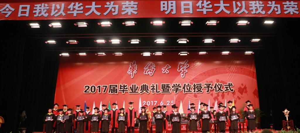在华大学术权杖的见证下,5768名毕业生依次接受师长拨穗,颁发学位证书,合影留念,穿过华大学位门,为自己的大学生活画上句点,也开启新的征程。