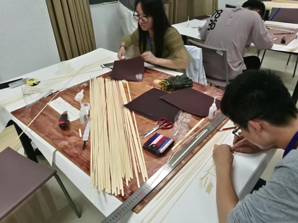 本次竞赛赛题为设计制作迎风广告牌模型,模型体积大,力矩较难控制。赛题考验结构横向偏心风载和纵向偏心荷载的稳定性。模型底部固定面积小,制作工艺要求高,有较高难度。整体结构需体现“稳定、安全、省材、实用、美观”的原则。我校三支参赛队伍在指导老师的细心指导下,历经两个多月的紧张备赛,多次通宵冲刺的努力,使结构在理论、方案、造型、细节、受力上接近极致;在ppt准备、计算书设计、叙述答辩等方面精益求精。模型制作历时16小时分三天进行,我校参赛队伍克服天气炎热,空气潮湿等不利条件,全部按时完成各自参赛作品。