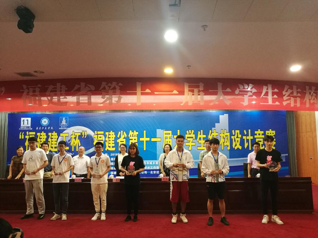 据了解,福建省大学生结构设计竞赛每年由福建省教育厅、福建省住房和城乡建设厅、土木建筑学会主办,赛事承办采用校际轮换原则,旨在培养大学生创新意识、合作精神和工程实践能力,同时也为福建省加强高校与企业之间的联系及推动学科创新活动起到积极示范作用。长期以来,我校致力于卓越工程师的培养,大量优秀的专业老师倾注热血指导学生课外科技实践,在福建省结构设计竞赛领域中累计获得特等奖2次、一等奖10次、二等奖5次、三等奖10次,最佳造型奖1次、优秀组织奖4次,在福建省各高校中名列前茅。