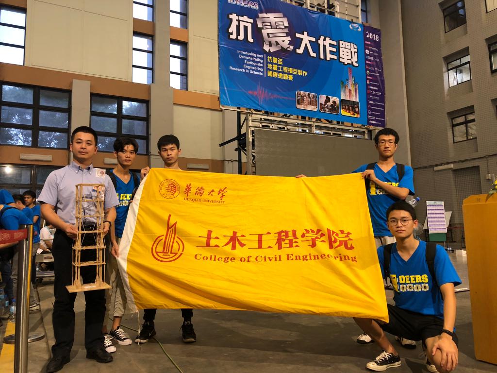 9月15日,台湾“2018抗震杯国际邀请赛”于台北地震工程研究中心(NCREE)圆满落下帷幕。本次“抗震杯”地震模型制作竞赛共有来自7个国家和地区的100多支队伍同场竞技。我校参赛队伍(队长:李溶平,队员:陈江堰、林文炜、左鹏举)由yl23411永利集团叶勇老师指导,赵珧冰、宋宸仪老师带队,制作的作品通过了比赛设置的最大加速度振动,并荣获“耐震奖”。