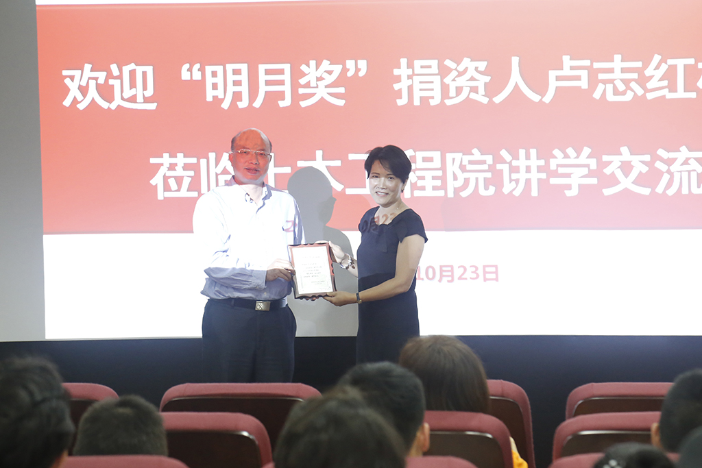 院党委书记张灯向卢志红校友颁授捐资助学奖牌