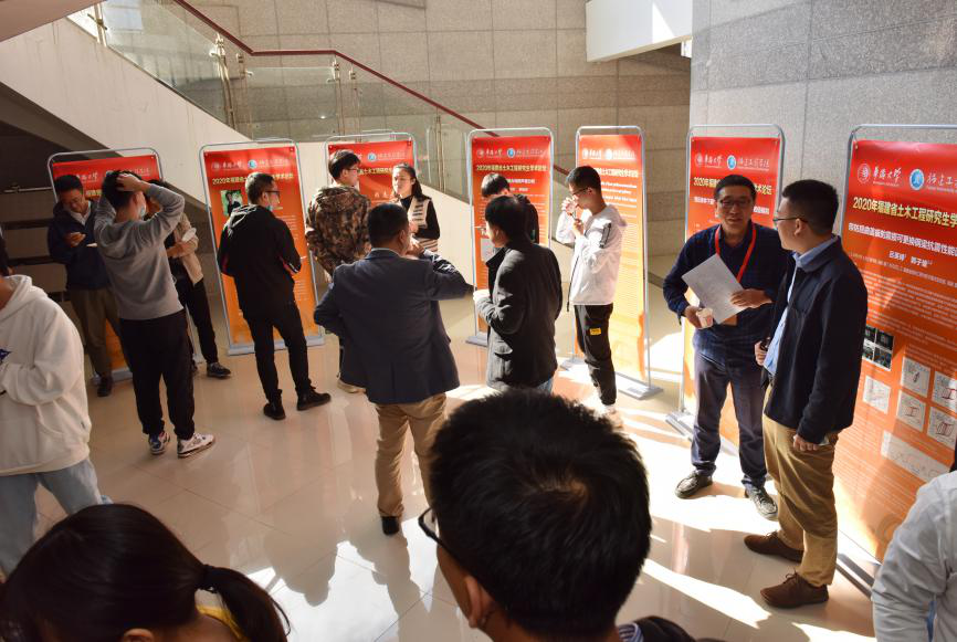 围绕“‘新基建’时代土木工程发展的新机遇”主题,论坛邀请福州大学赖志超教授、厦门大学的刘中华教授、东南大学的邓小鹏教授、福州大学范功端教授,分别作《高性能钢-混凝土组合结构研究进展》、《移动车辆荷载作用下桥梁的非线性随机响应》、《工程管理创新与展望》、《新型纳米材料构建及除藻机理研究》的大会特邀报告,李海锋教授担任论坛主席。论坛同时设结构工程、岩土工程、市政工程、工程管理等4个专题报告分论坛,此次论坛收到81篇论文作品,经过评审选出16名研究生代表作分会场报告,现场评选出4名最佳学术报告奖。