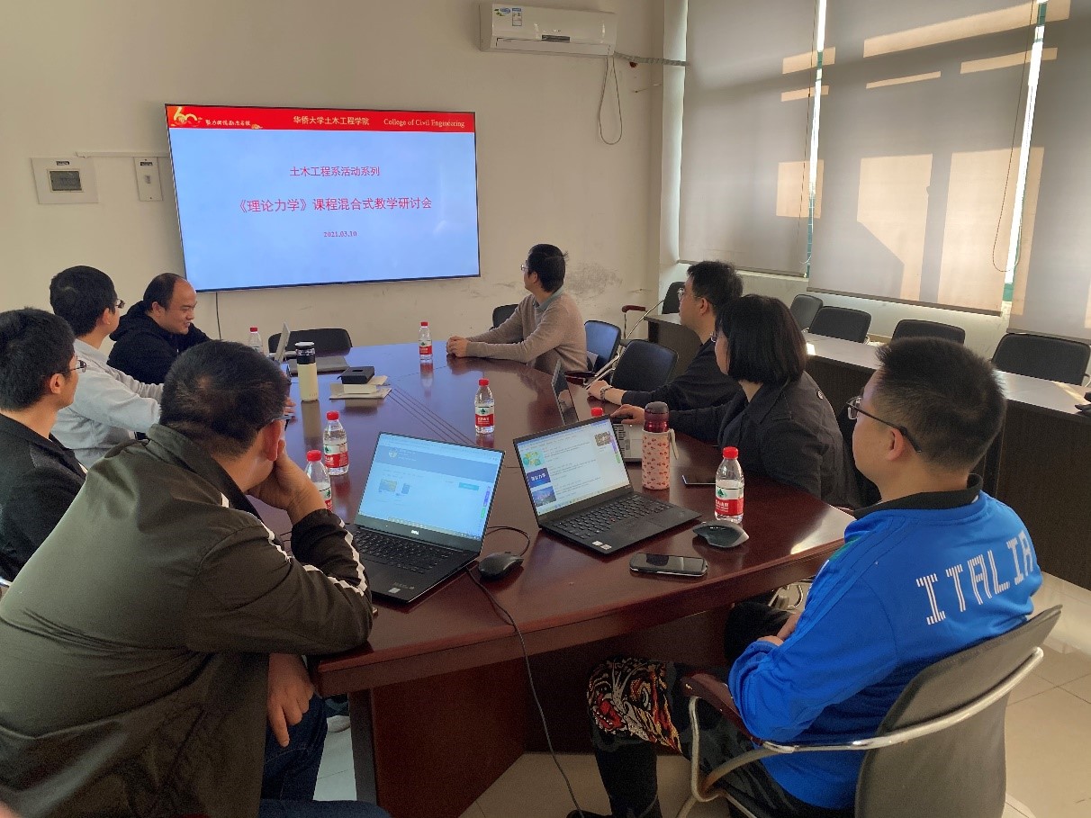 3月10日下午,《理论力学》课程组以一流课程建设和混合式教学模式创新为主题,在yl23411永利集团C5-506系活动室召开教学研讨会。课程组陈林聪教授、林建平副教授、梅真副教授、郑双杰副教授和刘海涛讲师等骨干成员参加,土木工程系副系主任、课程组负责人阚晋副教授、赵珧冰副教授联合主持研讨会,土木工程系系主任侯炜副教授应邀参加研讨。
