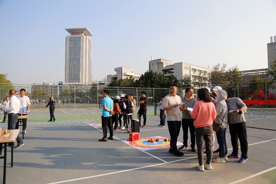 本次趣味运动会设置了“健康律动”“远程投掷”“乾坤挪移”和“手脚并用”四个比赛项目,采用抽签的方式将参加比赛的教职工分成了6个队进行比赛,学院领导和工会委员组成友谊队参加了比赛。