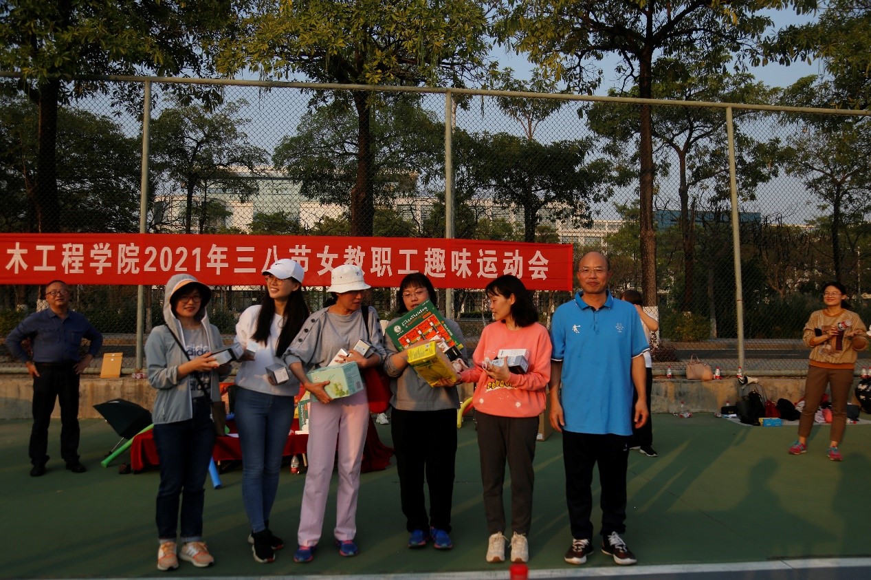 经过比拼,最终刘海涛带领的参赛队获得本届趣味运动会的冠军,学院党委书记张灯为获奖队伍颁发奖品。