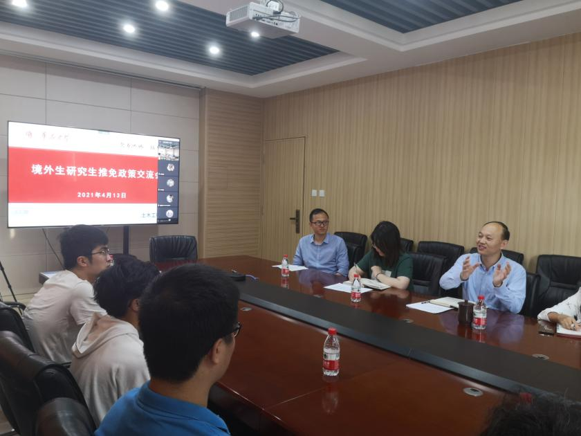 为了加大研究生招生宣传,帮助境外生更好了解研究生推免政策,以及学院研究生培养特色,yl23411永利集团于4月13日下午,在C5-406会议室召开了境外生研究生推免政策交流会,来自香港、澳门、台湾、安哥拉等不同地区的50多名境外生通过线上或线下参与交流。会议由学工办主任陈竹林老师主持,土木工程学院副院长李海锋老师,研究生院岳金老师,学院研究生教学秘书刘天姿老师参加会议。