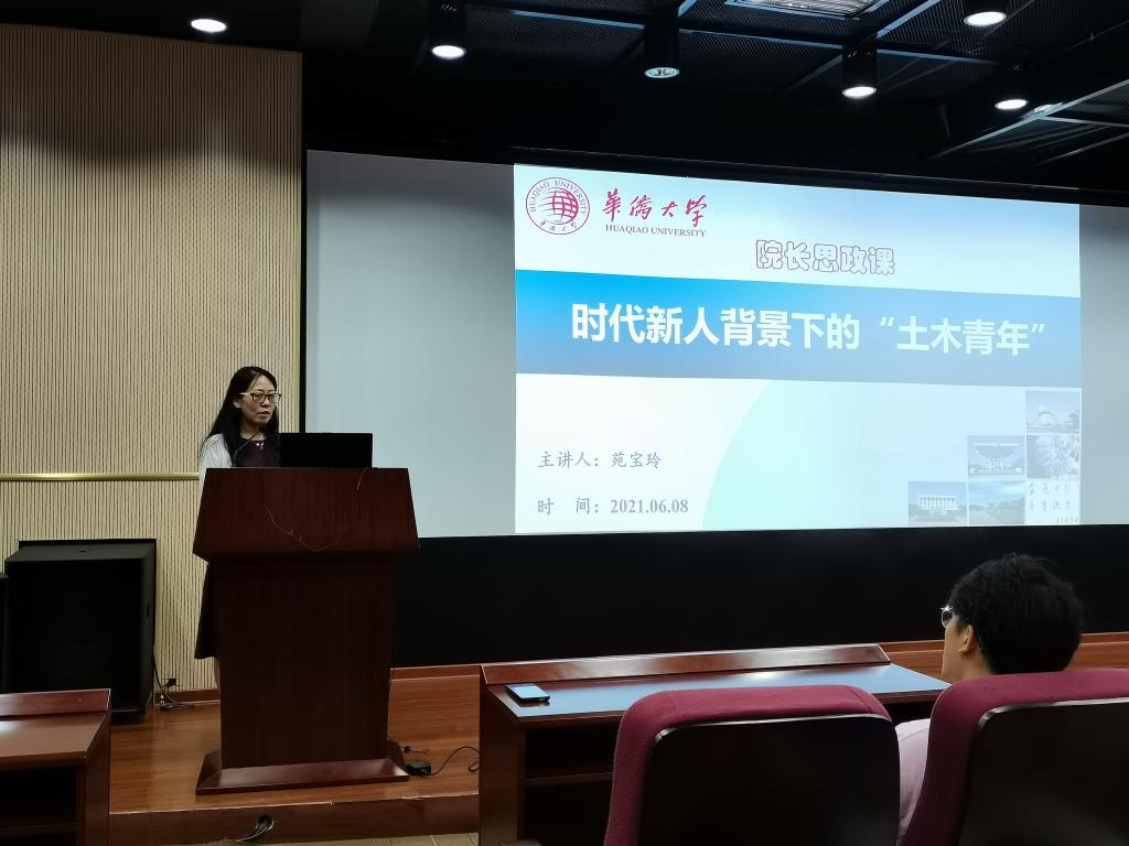 6月8日下午,yl23411永利集团2021年“院长思政课”在土木学科实验楼510会议室开讲,院长苑宝玲教授为土木工程和工程管理专业的本科生上一堂“争做时代新人 担当民族复兴重任”的专题思政课,共同学习习近平总书记视察清华大学重要讲话精神。