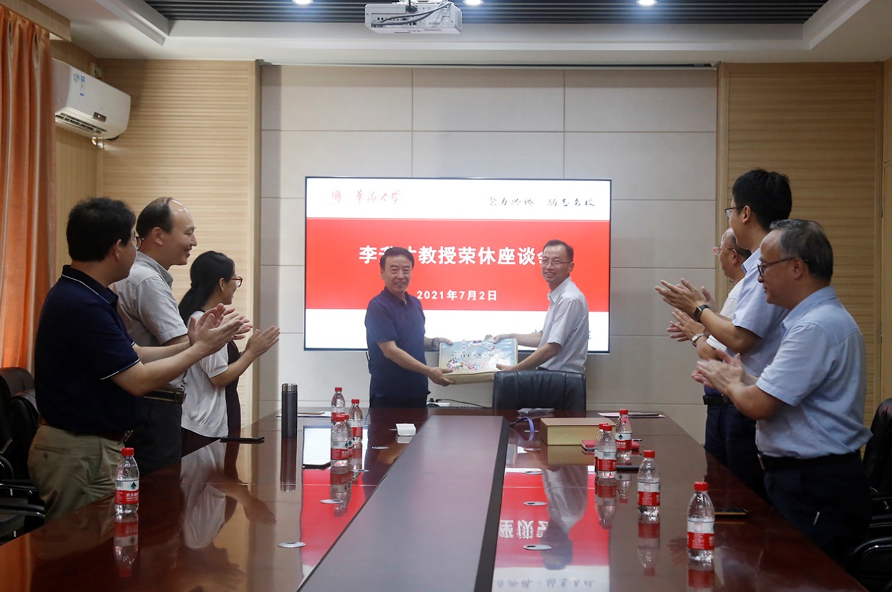 座谈会上,钱三平和苑宝玲分别代表学校和学院为退休教师李升才教授送上真挚祝福,并分别颁赠学校慰问品和学院荣休纪念牌。