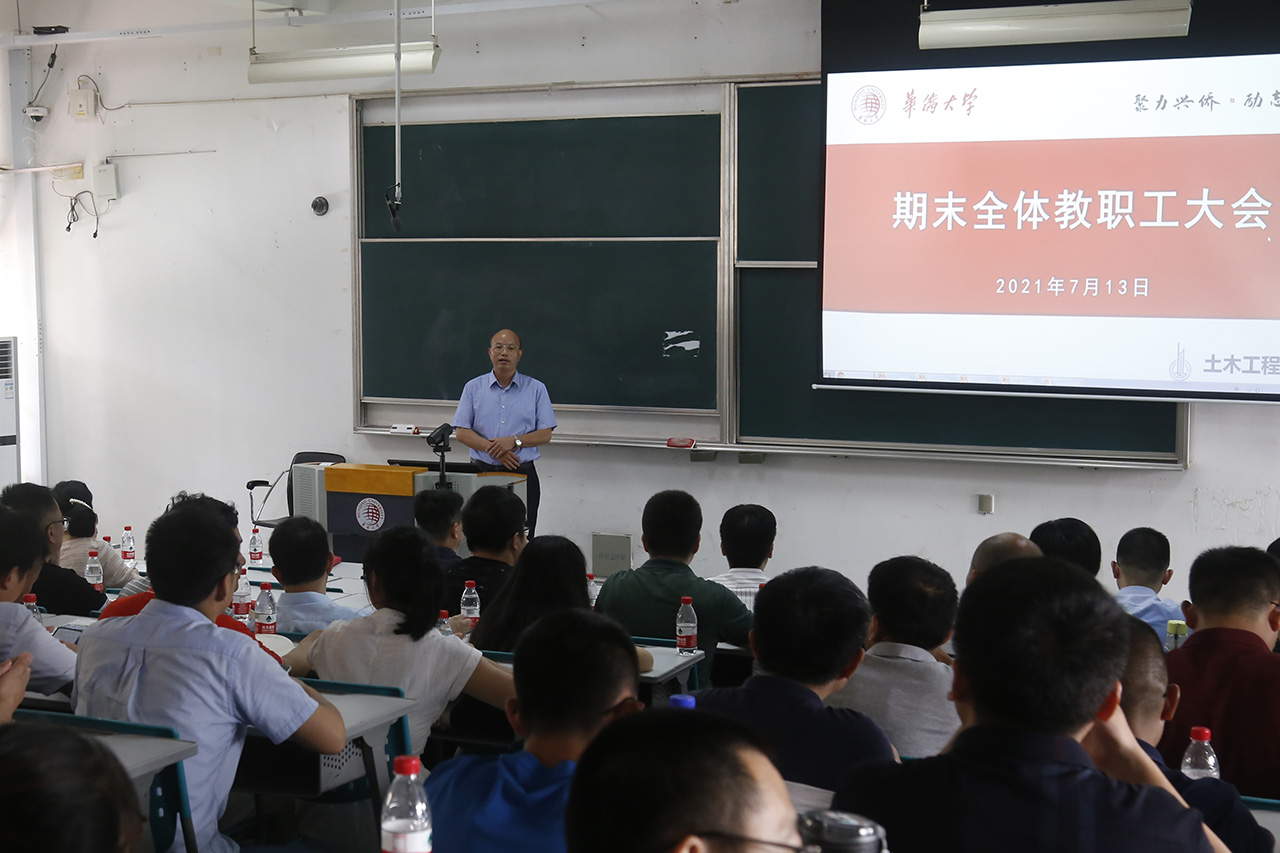 最后,张灯通报了学院党建和党风廉政建设、学生思政教育、工会等工作,重点布置了暑假期间疫情防控工作及安全注意事项,要求教职工在假期做好疫情防护,劳逸结合,为下学期的教学科研工作做好准备。