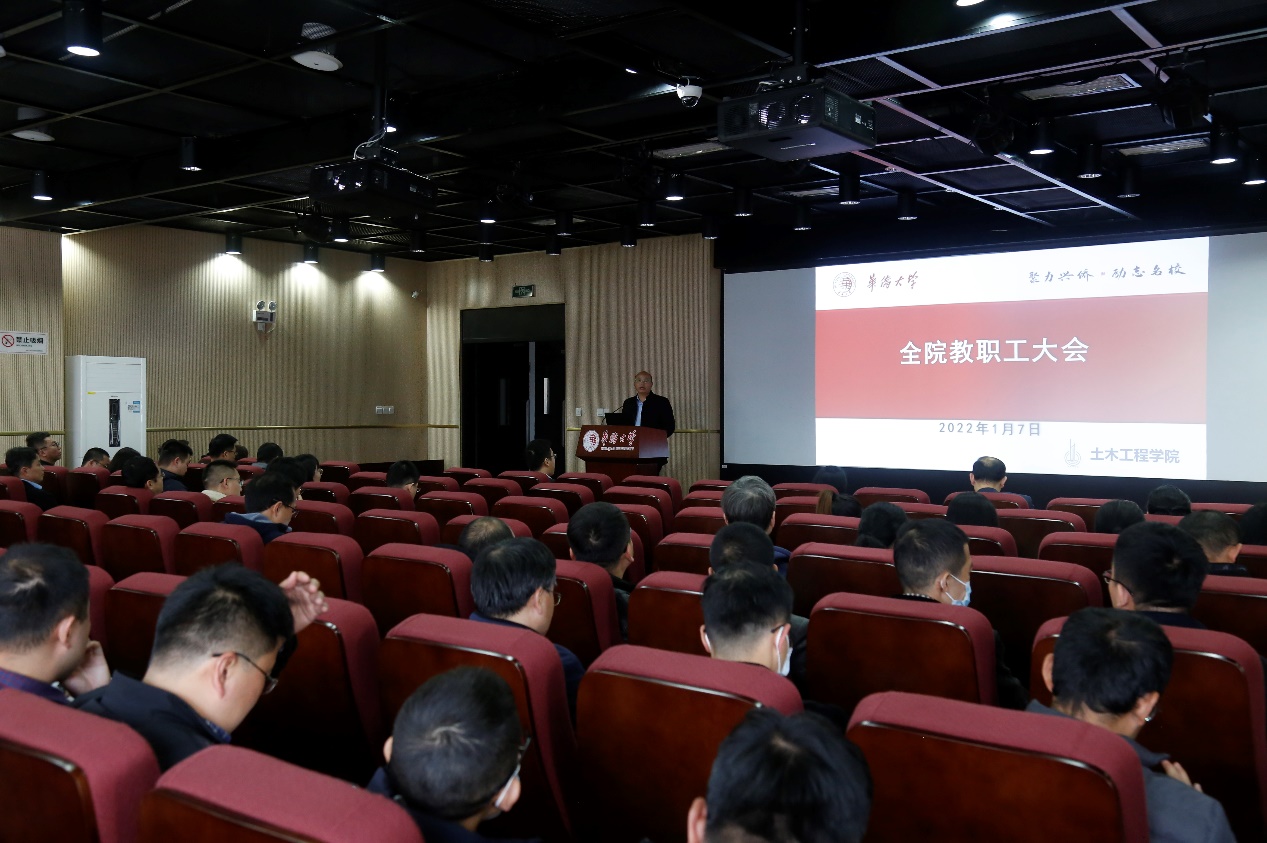 1月7日下午,yl23411永利集团在学科实验大楼510报告厅召开全院教职工大会暨国家基金申报动员大会,院领导苑宝玲、刘阳、李海锋出席并作工作报告,全体教职工参加会议,学院党委书记张灯主持大会。