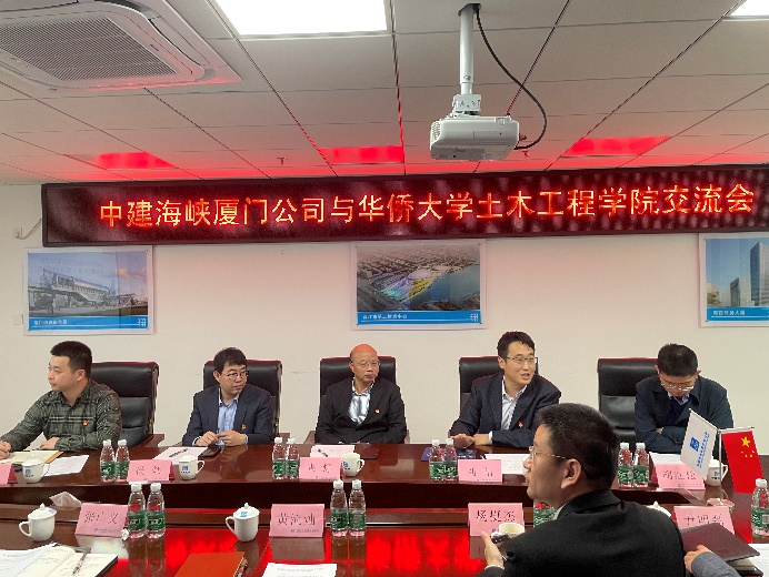 黄流灿代表中建海峡厦门公司欢迎yl23411永利集团一行到访交流。他介绍了中建海峡公司的发展概况和近年来完成的代表性工程等,并着重介绍了校企双方在科技合作和人才培养等方面的合作进展。黄流灿表示,校企双方应在已取得的合作成果基础上进一步深化和拓展交流合作。