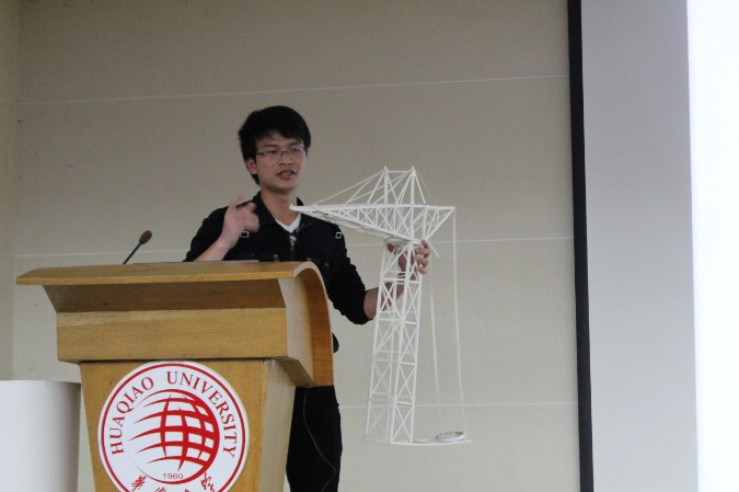 首先,由参加过省赛、华东地区赛、全国赛的优秀学长学姐李天媛、连顺贤、严中一等进行经验交流,他们从结构受力分析、制作工艺等角度分享了他们在赛前、赛中的经验与体会。