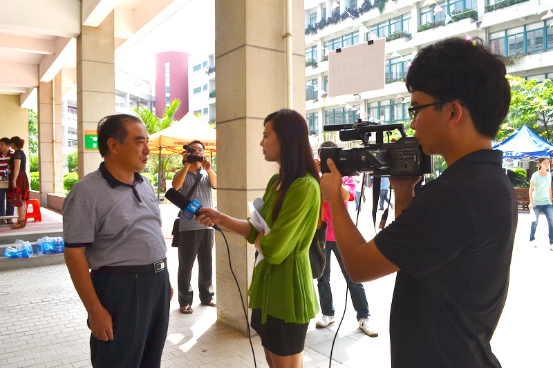 正当集美电视台采访新生时,yl23411永利校长贾益民来土木学院视察学院的迎新工作。电视台采访了贾校长,贾校长表示:“大学是人生中最重要的四年,大学有责任育德,育才。”