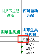 填写下拉键选择的字段时,请将鼠标置于空白单元格,就可以看到右下角有一个下拉三角形标志,然后下拉选择即可,如右图所示。