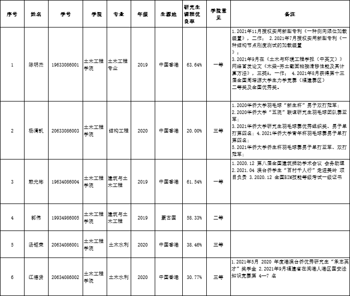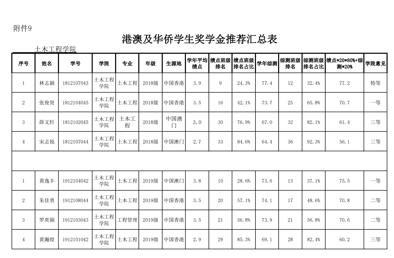 根据《关于开展2021年度台湾、港澳及华侨学生奖学金评审工作的通知》(教助中心〔2021〕53号)和学校相关通知,经个人申请、学院学生工作委员会讨论,决定推荐以下同学参评2021年度台湾、港澳及华侨学生奖学金。
