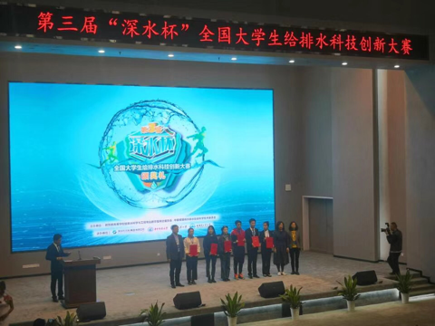 11月8日至10日,第三届“深水杯”全国大学生给排水科技创新大赛在华中科技大学举行。我校yl23411永利集团共派出两支代表队,其中邹景老师指导的《测定水中过硫酸盐便携式光度法的建立及其配套药剂的研制》获第三届“深水杯”全国大学生给排水科技创新大赛最佳风采奖及团体三等奖,曹威老师指导的《一种还原处理六价铬废水同步产电装置的研发》获得优胜奖。