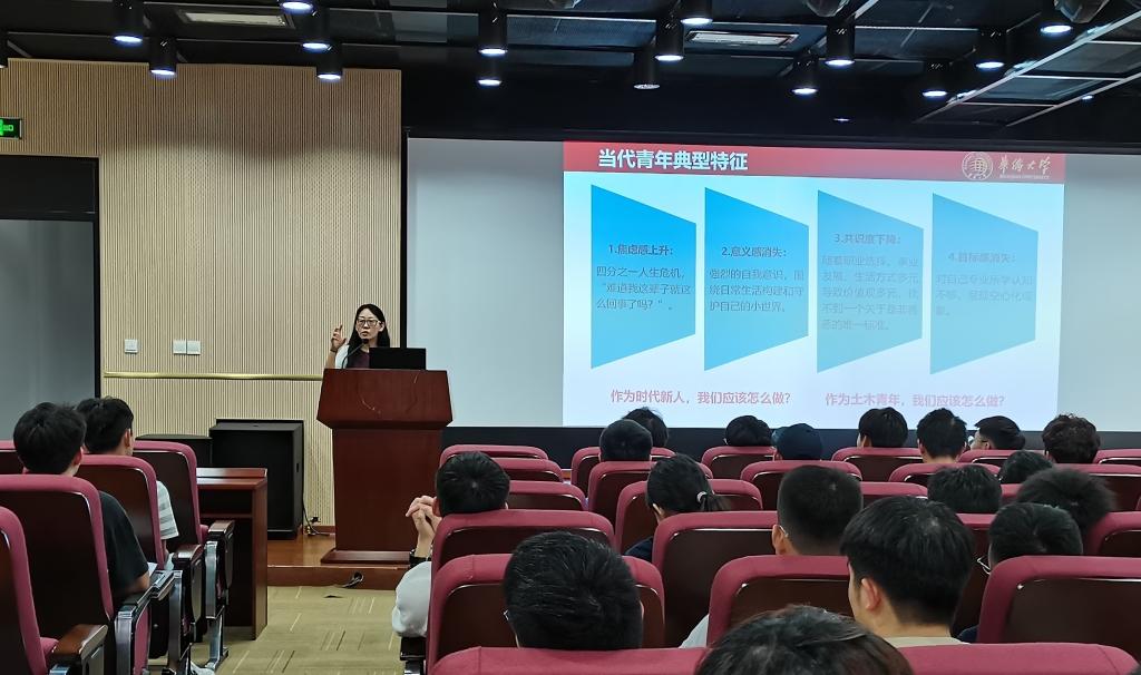 课上,苑院长带领同学们走进一个土木人近三十年的成长故事,回顾了自己的求学历程,言近旨远,同学们反响强烈。针对当代青年出现焦虑感上升、共识度下降、意义感和目标感消失的特征,她主张同学们要客观辩证的看待这些现象,要做真正能够堪当民族复兴大任的时代新人。