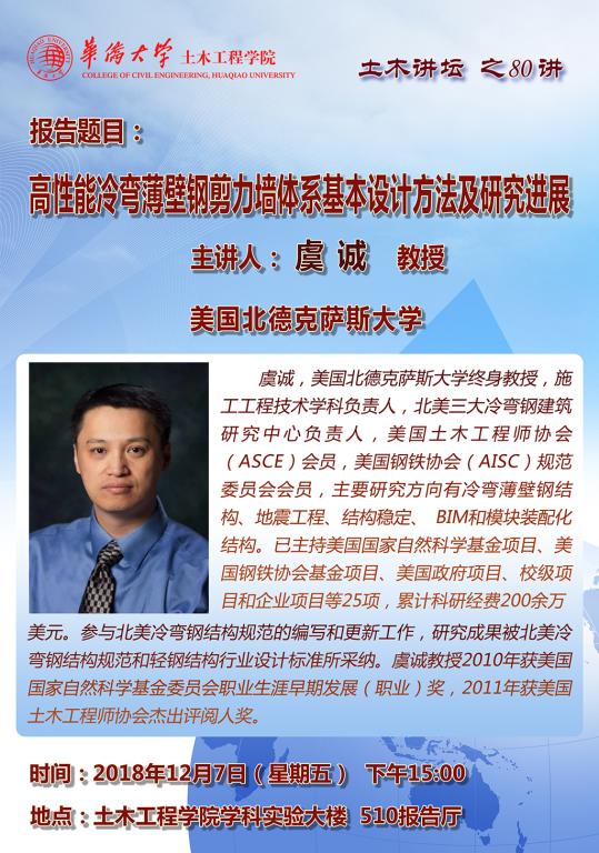 土木讲坛之80讲:美国北德克萨斯大学虞诚教授