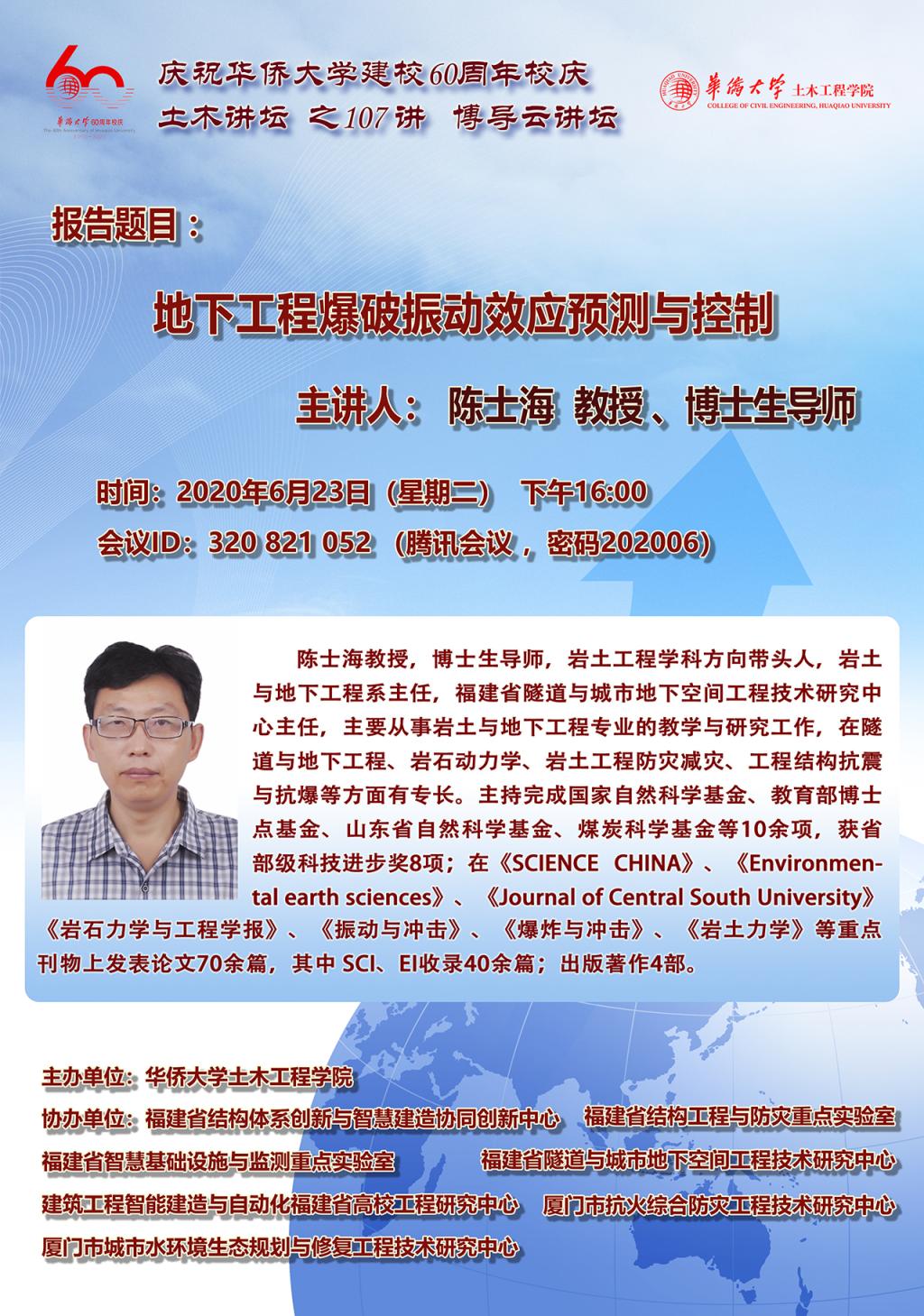 60周年校庆“博导云讲坛”暨土木讲坛 之 107 讲:陈士海教授