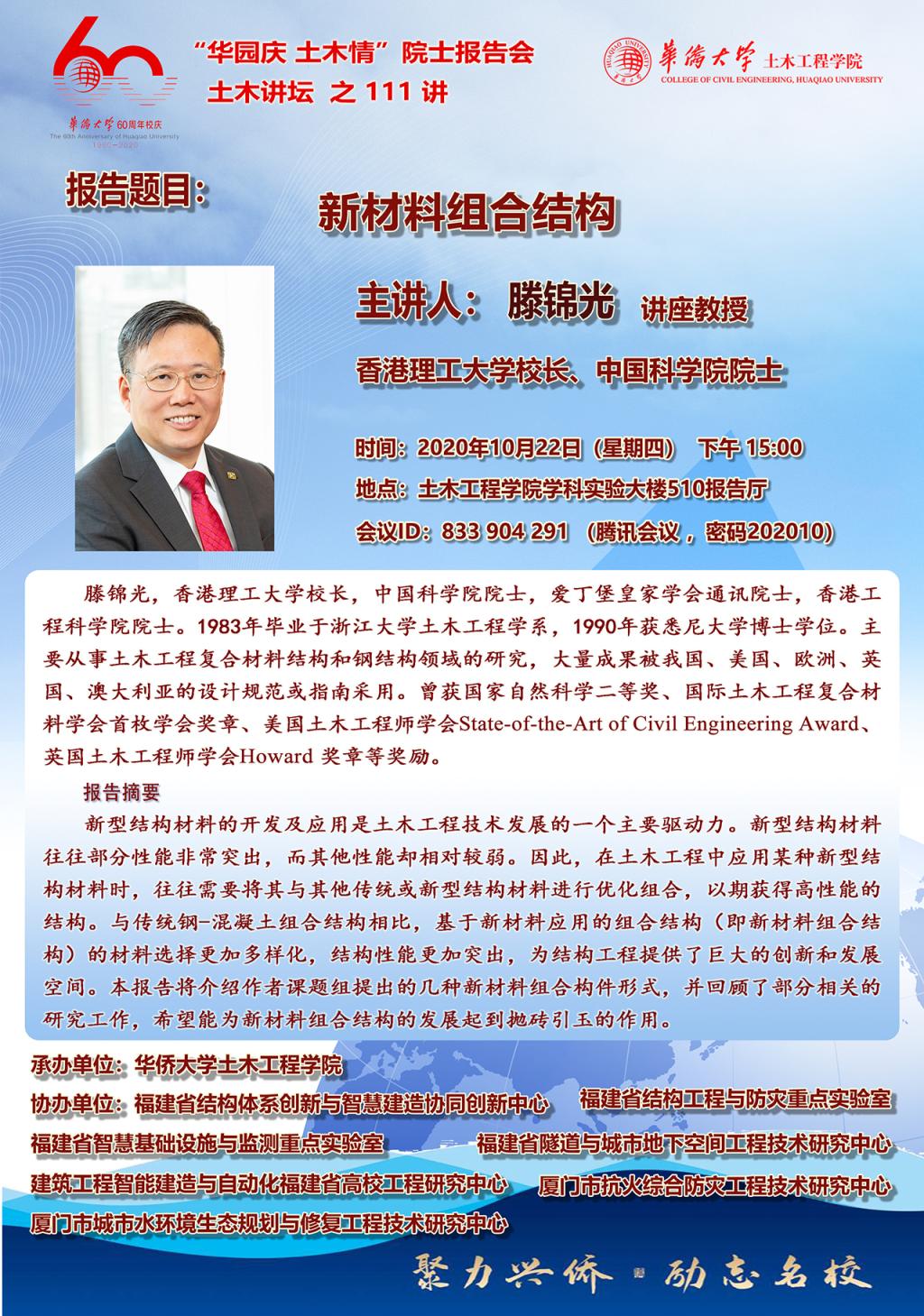 60周年校庆“华园庆 土木情”院士报告会暨土木讲坛之111讲-滕锦光院士