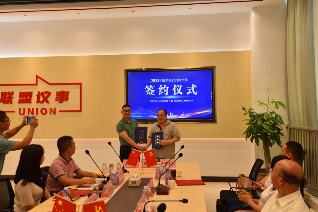 7月1日,正值建党101周年之际,建筑结构抗火与防灾减灾创新团队一行(以下简称“团队”)赴集美软件园三期党群活动服务中心与厦门卓毅建筑工程有限公司(以下简称“公司”)开展党建共建与技术开展战略合作。学院党委书记张灯,闽江学者特聘教授、团队学术带头人董毓利,团队党支部书记王卫华,公司总经理陈文理,公司党支部书记林丽娜,以及团队和公司党员20余人参加了活动。