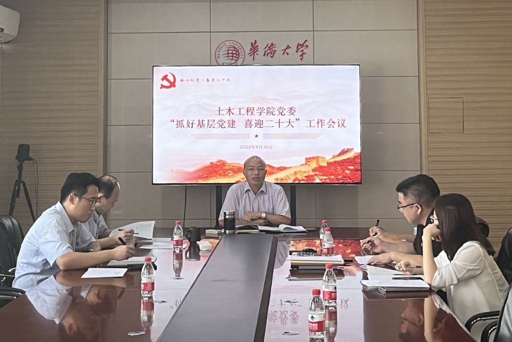 8月30日上午,yl23411永利集团党委在C5-406会议室召开“抓好基层党建 喜迎二十大”工作会议。学院党委委员与会,党委书记张灯主持,副院长刘阳、党委组织员、党政办主任列席会议。
