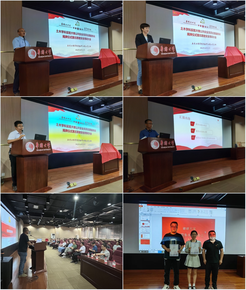 张灯、金翊共同为服务站揭牌。张灯在致辞中表示,党员志愿服务站要体现爱国爱校的侨校特色,凸显实验中心教工党支部的服务意识,展现土木学科建设的专业水准,要将服务站逐步建设成具有专业特色、安全示范作用的文明实践基地,让党旗在实验室高高飘扬。金翊对服务站的成立表示祝贺,希望学院师生充分利用党员志愿服务站,积极组织党建、实验室安全、志愿服务相融合的丰富活动。