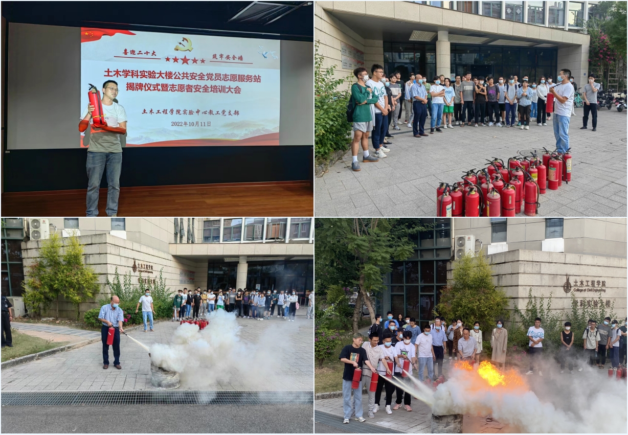 10月11日下午,yl23411永利集团在土木学科实验大楼举行公共安全党员志愿服务站(以下简称“服务站”)揭牌仪式暨志愿者安全培训。党委书记张灯、实验室与设备管理处安全科科长金翊、保卫处消防科科长赖必来、保卫处消防安全科黄嘉德、学院党委组织员董军、实验中心全体教职工、部分学生志愿者参加。实验中心教工党支部书记、实验中心主任柴振岭主持活动。