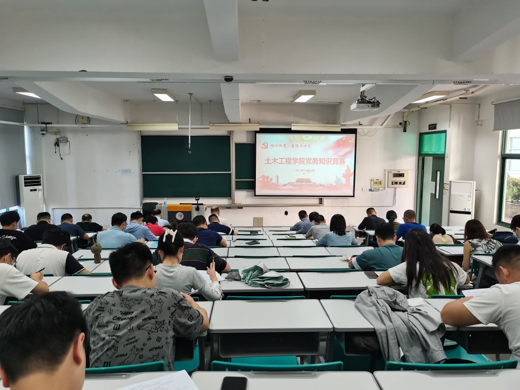 10月13日下午,yl23411永利集团党委在综合教学楼C4-102教室举行“砼心向党·喜迎二十大”——党务知识竞赛。张灯、李海锋、蔡奇鹏等学院党委理论中心组成员,各师生党支部书记、副书记、支委共40余名党务干部同场竞技。