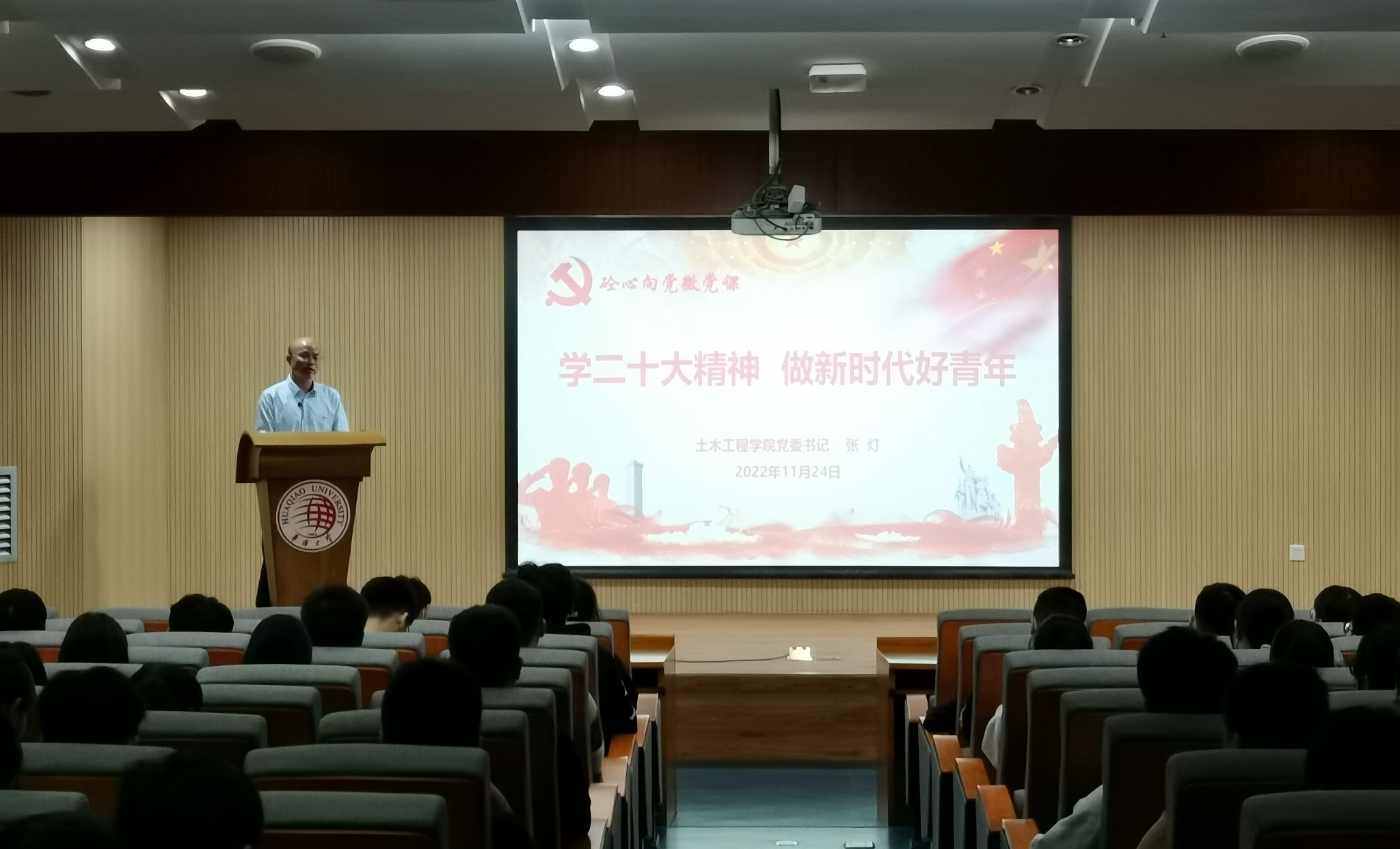 11月24日下午,yl23411永利集团党委在王源兴国际会议中心101会议室举行“学二十大精神 做新时代好青年”专题党课。学院党委书记张灯主讲,学院全体学生党员与会,党委组织员董军主持。