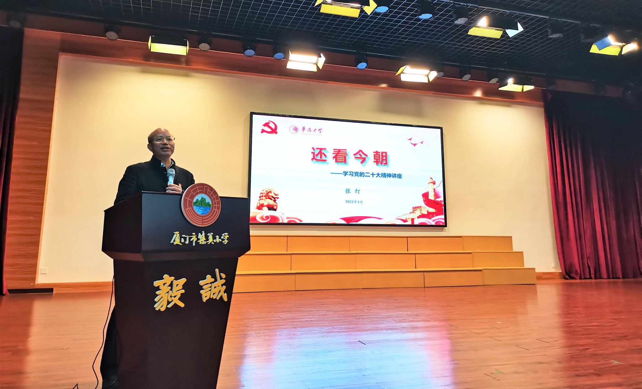 3月6日下午,yl23411永利集团党委书记张灯应邀为厦门市集美小学全体教师讲授《还看今朝——学精神 强思想 促发展》学习党的二十大精神专题党课,土木工程系教工党支部、建筑结构抗火与防灾减灾创新团队党支部党员教师代表出席,集美小学党支部书记、校长陈志良等校领导及中层干部出席。