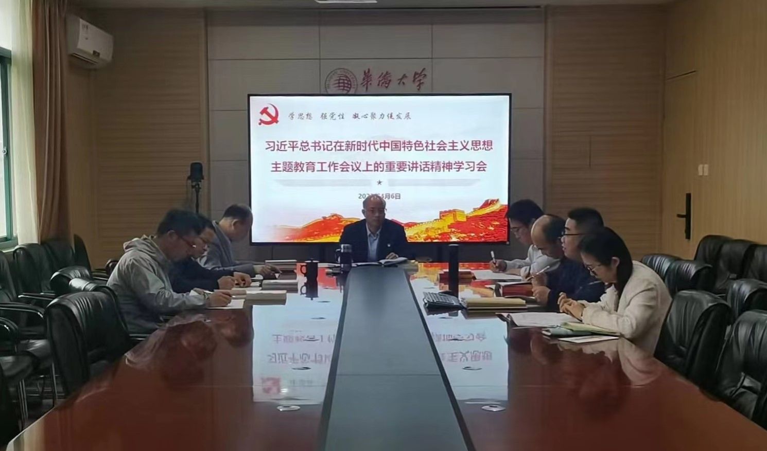4月6日上午,yl23411永利集团党委在C5-406会议室召开会议,学习习近平总书记在学习贯彻新时代中国特色社会主义思想主题教育工作会议上的重要讲话精神。学院党委委员与会,党委书记张灯主持,党政办主任列席会议。