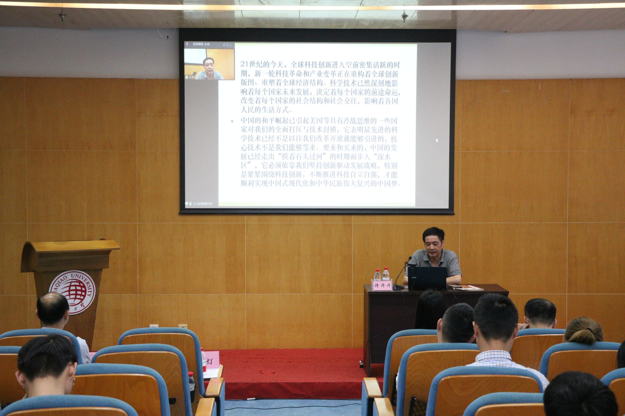 我校哲学与社会发展学院院长、博士生导师许斗斗教授应邀为校企双方党员作题为《中国式现代化的革命性与实践性》的专题辅导讲座。许斗斗从党的二十大报告的核心思想切入,带领同志们重温了党的二十大报告的主要内容,并以马克思的社会革命与社会发展为依据,用充分的事实论证了中国式现代化的社会革命是以人的全面发展、人的自由和解放为目的的,并论证了中国式现代化“两步走”战略的合理性与全面性。许斗斗强调,中国式现代化实践必须要始终坚持党的领导;始终坚持马克思主义理论,推进马克思主义中国化时代化;始终坚持创新驱动发展战略,不断推进科技自立自强。最后,许斗斗阐述了中国式现代化的基本内涵,展示了中国式现代化不仅在客观面对并解决我国发展中的主要矛盾中展示了“中国特色”的特殊发展之路,而且为解决人类共同问题贡献了中国智慧和中国方案。