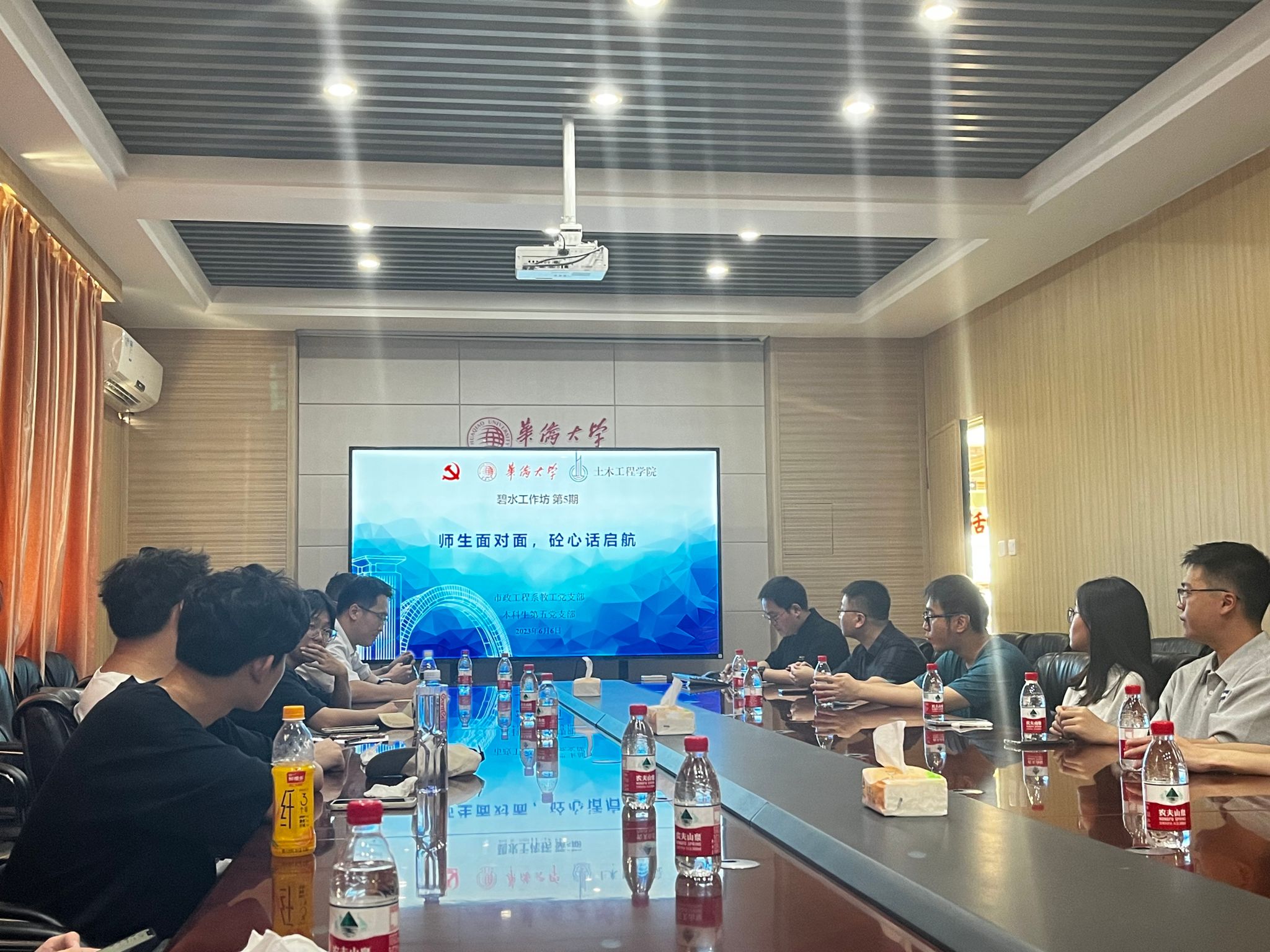 6月6日,市政工程系教工党支部联合本科生第五党支部共同组织举办“碧水工作坊”第五期活动暨给排水科学与工程专业2023届毕业生座谈会,旨在更好倾听毕业生心声,充分了解毕业生学习、生活、就业情况,不断提升市政工程系的学科建设和学生培养能力。市政工程系教师代表沈春花、周真明、胡奕博、徐垒及2023届毕业生代表参加座谈,学院党委委员、市政工程系教工党支部书记、系主任邹景主持。学院党委委员、副院长刘阳应邀出席。
