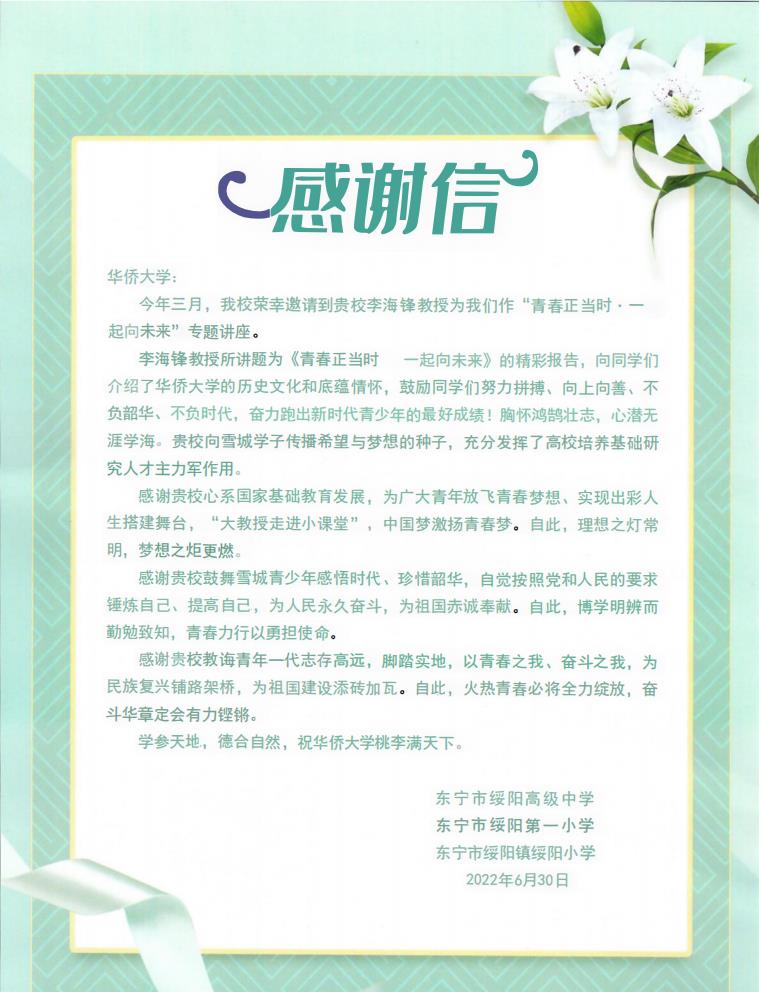 牡丹江市教育局为李海锋、赵珧冰致发的感谢信和聘书