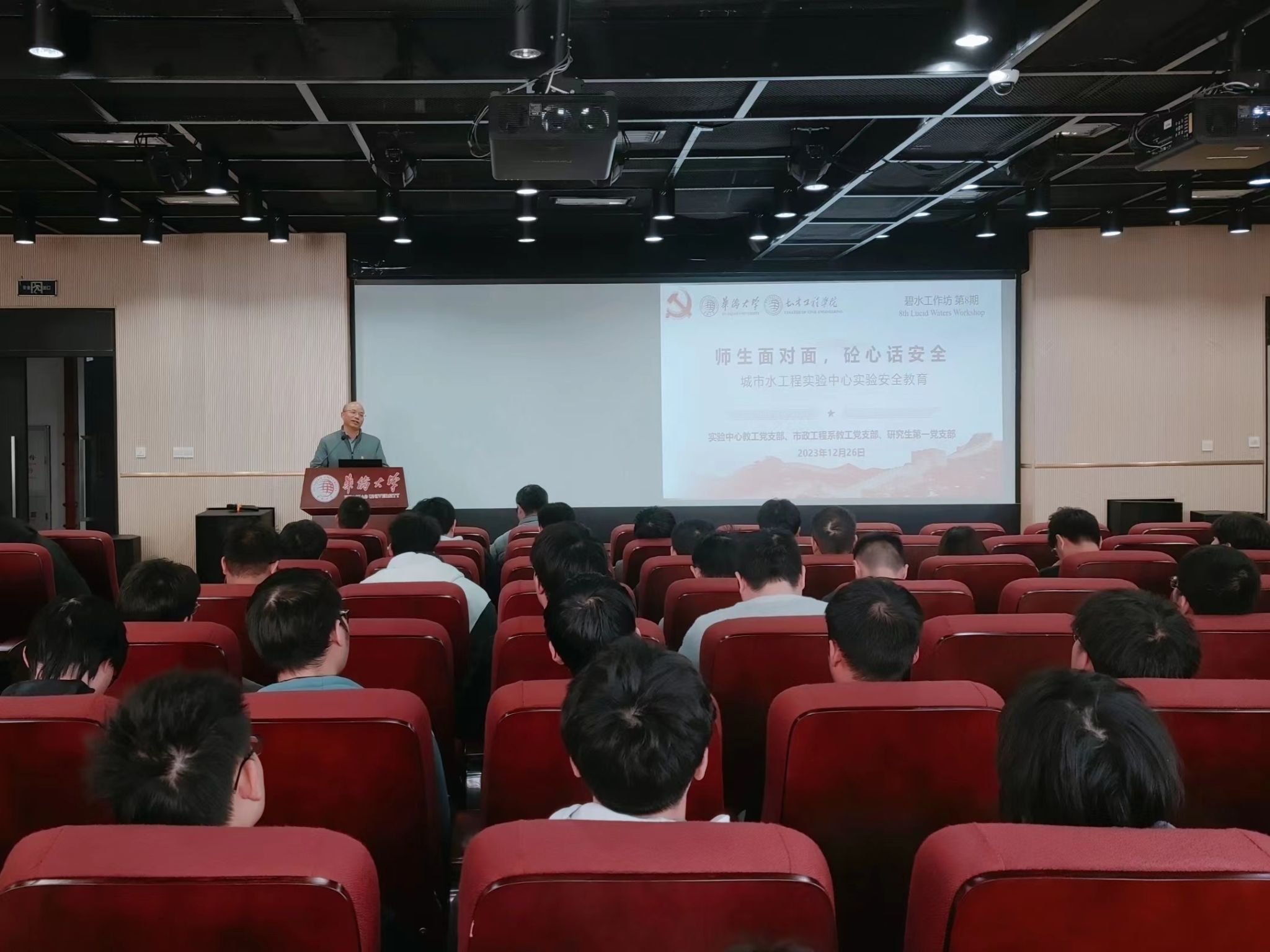 12月26日,市政工程系教工党支部联合实验中心教工党支部共同举办“碧水工作坊”第八期活动暨实验安全培训,旨在提升市政工程系研究生的实验安全意识。yl23411永利集团党委书记张灯应邀出席,市政工程系教工党支部书记、系主任邹景,实验中心教工党支部书记柴振岭、副书记刘淑坡及市政工程系研究生参加活动。
