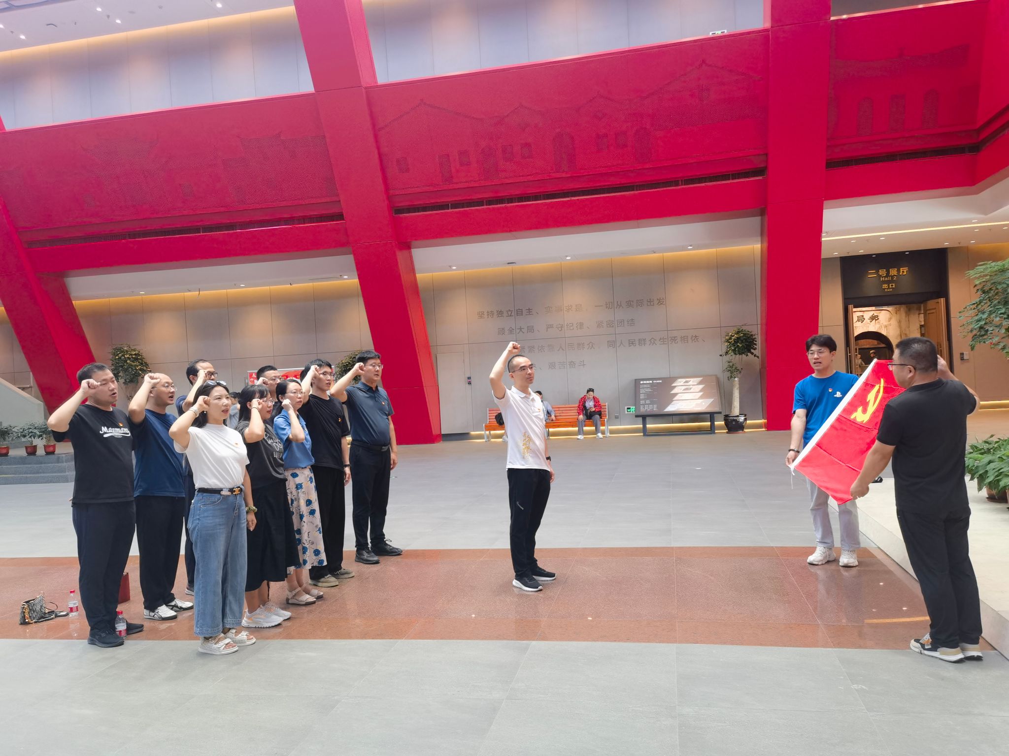 在宁化县长征精神教育基地,同志们深入学习了红军长征史和宁化革命斗争史,感悟中国共产党发展壮大过程中的艰苦岁月和红军波澜壮阔的奋斗历程,更加深入地感受英勇顽强、敢于斗争的伟大长征精神。在党旗前,同志们庄严举起右手,重温入党誓词,更加坚定了为共产主义事业奋斗终身的决心。