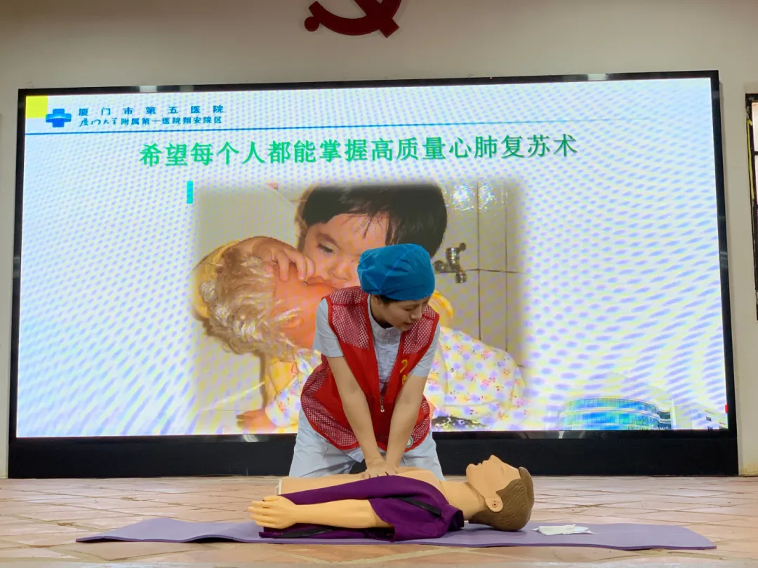 为提升应对突发情况的自救互救能力,签约仪式结束后,厦门市第五医院阙茂棋医生和黄雪珍护士长为与会人员讲解了实用应急救护技能并作了生动示范。