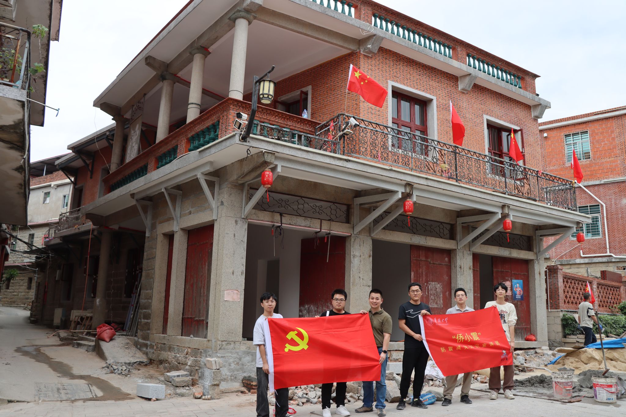 为热烈庆祝中华人民共和国成立75周年,10月3日,现代组合结构和抗震防灾创新团队党支部(以下简称“抗震支部”)与“侨小震”防灾减灾研究生创新团队党支部深入泉州市洛江区桥南社区,以党建为引领,开展了一场以石结构加固为主题的专业活动,为当地石结构建筑安全加固贡献力量,以实际行动向新中国成立75周年献礼,