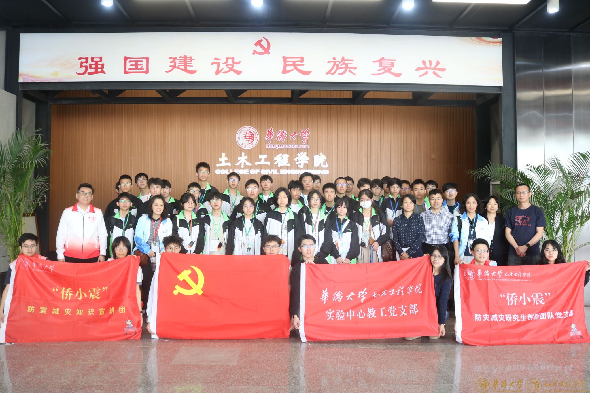 4月16日和18日,香港沙田苏浙公学和香港创知中学师生到访土木学科实验大楼参观学习,实验中心教工党支部和“侨小震”防灾减灾研究生创新团队党支部(以下简称“侨小震”党支部)接待了到访师生并对实验大楼各功能区域作讲解。