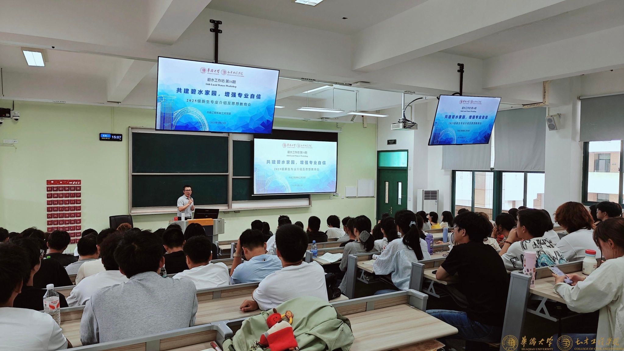 9月23日,市政工程系教工党支部在C5-201教室举办“碧水工作坊”第16期暨新生入学教育活动,党支部书记、系主任邹景教授以“共建碧水家园,增强专业自信”为题作专业介绍及专业思想教育讲座。党支部全体党员、给排水科学与工程专业2025级全体新生参加。
